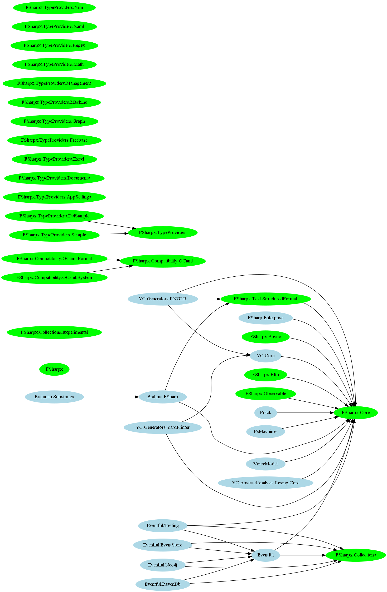 The second thing is visualization of the result, here I want to say thank you to Scott Wlaschin for his great script type-dependency-graph.fsx (that was built for ‘Cycles and modularity in the wild‘ analysis). I took his GraphViz module and slightly modified it to allow colorful graphs printing. To use it you need to download GraphViz from the official site.