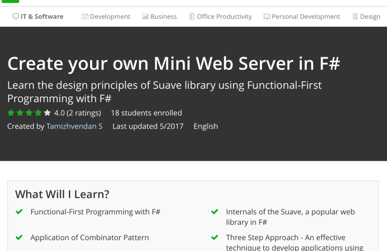 - Buy new “Create your own Mini Web Server in F#” course from F# Weekly and get 50% discount!