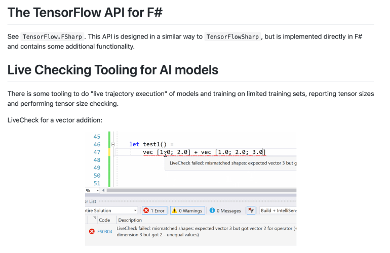 - fsprojects/TensorFlow.FSharp – TensorFlow API for F# + Differentiable F# eDSL