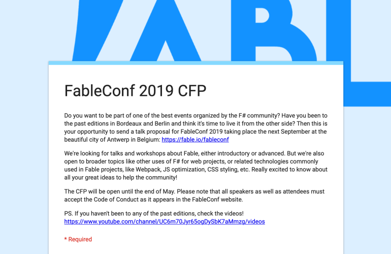 One thought on “F# Weekly #18, 2019 – ML.NET 1.0 & CFP for FableConf 2019 Antwerp”