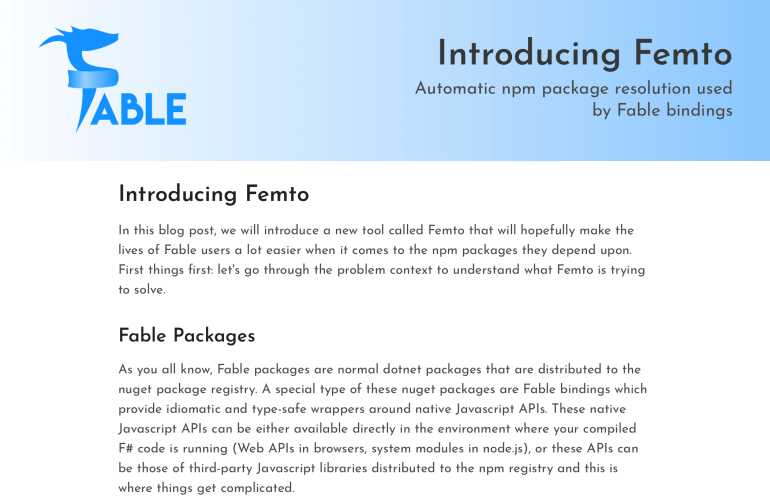 - Introducing Femto – Automatic npm package resolution used by Fable bindings