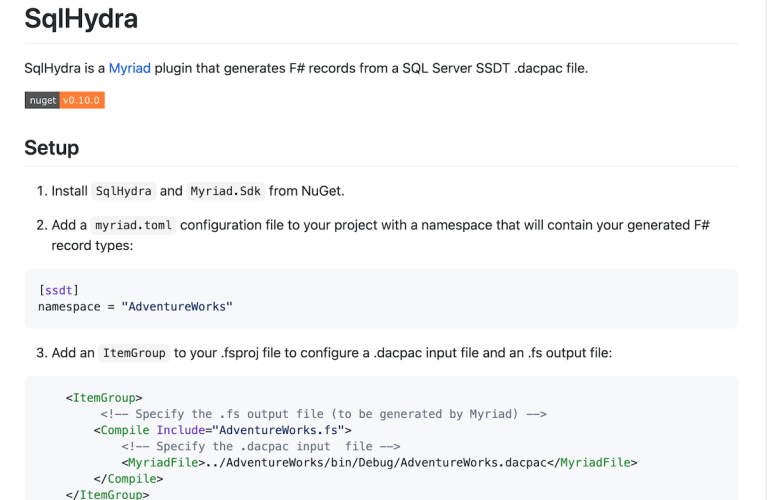 - JordanMarr/SqlHydra: SqlHydra is a Myriad plugin that generates F# records from a SQL Server SSDT .dacpac file.