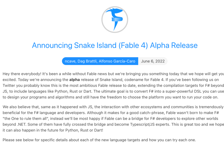 2 thoughts on “F# Weekly #24, 2022 – Fable 4 (Snake Island), Dark in F#, .NET 7 Preview 4”