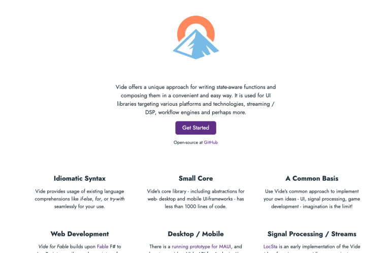- RonaldSchlenker/Vide: Reactive front-end framework for F# without dependencies.