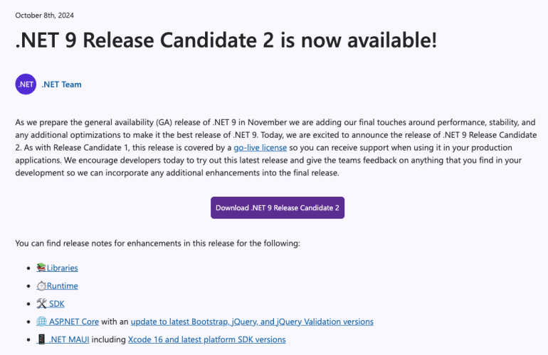 - .NET 9 Release Candidate 2 is now available! – .NET Blog