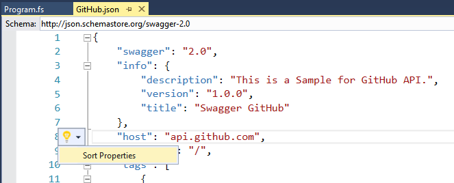 If you use Visual Studio to edit Swagger schema, you will be pleasantly surprised by “Intellisense for JSON Schema in the JSON Editor”
